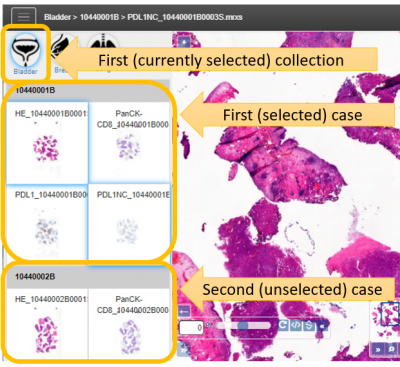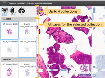 By default, the first collection is selected, and the cases are listed underneath. Similarly, the slides per case are grouped under each case header.