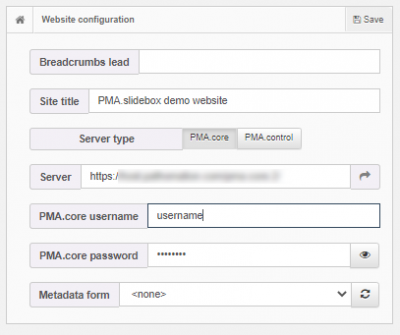 Now go to the PMA.slidebox configuration page. Log in with the same credentials that you just used to access PMA.core.