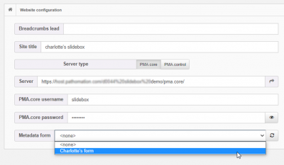 You start by going to PMA.core and define a form that will hold your slide meta-data.