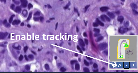 You may also use the thumbnail image as a quick way to navigate to a particular area of your (already zoomed in) slide: just click on the area in the thumbnail, and the viewport automatically navigates to the selected region.