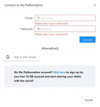 คุณสามารถเชื่อมต่อบัญชี My Pathomation ของคุณ ด้วยการคลิกที่เมนู 'เข้าสู่ระบบ My Pathomation' ใต้สัญลักษณ์รูปก้อนเมฆที่มุมขวาบนของเมนูด้านบน