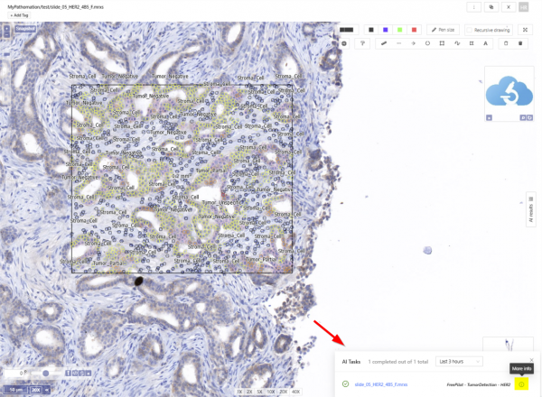 Start by selecting the slide you want to analyse. In the slide menu there is an AI button that opens the menu of available algorithms.