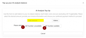 1. The AI algorithms available in the Pathomation AI marketplace are from third party vendors. Use of these algorithms is subject to a payment per use. The price details of each algorithm can differ and will be visible when you select the algorithm for use on an image. At this point you can also see the remaining credit on your account, if you don't have enough credit, go to your account and open the payment module to make a payment.