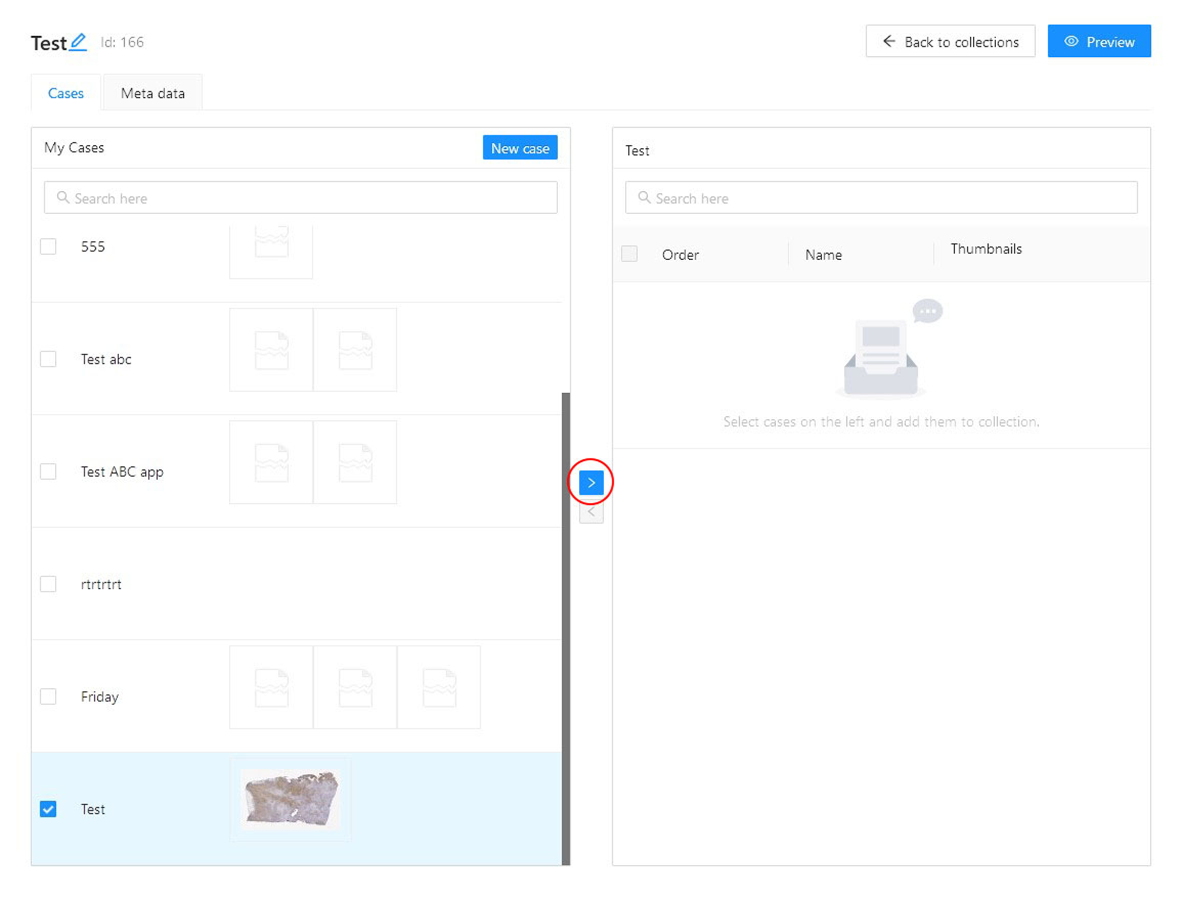 5) Return to the list, by using the “Back to collections” button, or preview your newly created collection by clicking on “Preview” button.