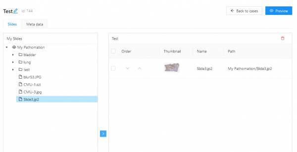 The slides now have been added to your case. To view your cases, go back to the list by using the “Back to cases” button, or preview your newly created case by clicking on “Preview” button.