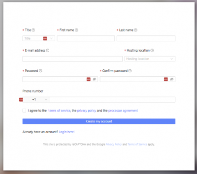 Then agree to the terms of service, privacy policy and data processor agreement and click “Create my account”
