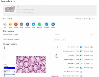 4. By clicking on “ADVANCED (more options and properties)” you can finetune your share. You can password-protect your share, set an expiration date for your share or modify viewport to your needs.
