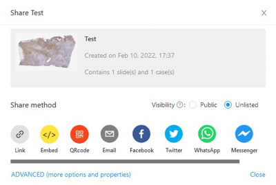 4. By clicking on “ADVANCED (more options and properties)” you can finetune your share. You can password-protect your share, set an expiration date for your share or modify viewport to your needs.
