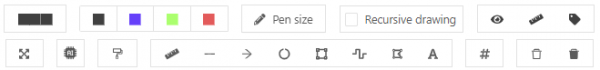 • custom colour selection, standard colours, pen size options, recursive drawing, hide/show all annotations, measurements, hide/show all labels