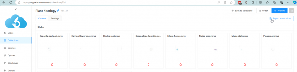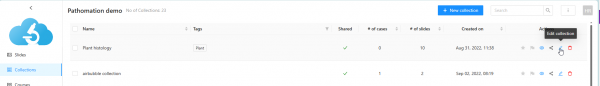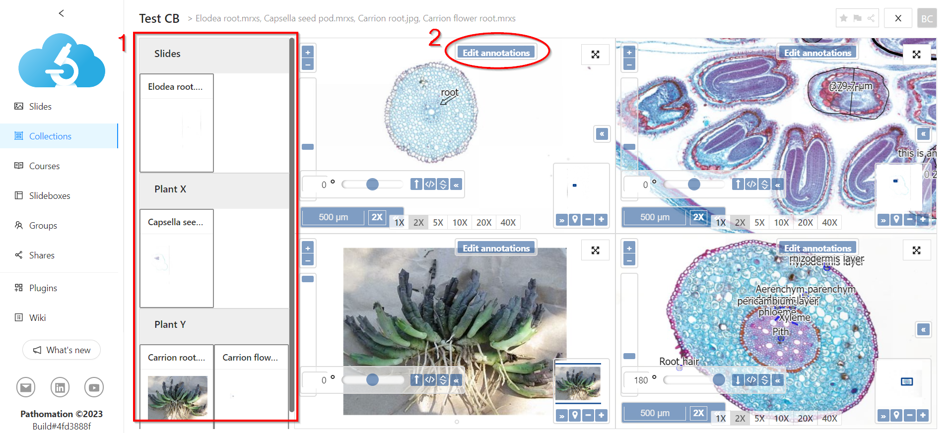 You can also edit a slide’s annotations by clicking the “Edit annotations” button (2). These annotations will only be visible in the collection.