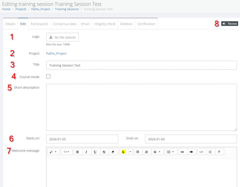 5. Insert a short description of the training session
