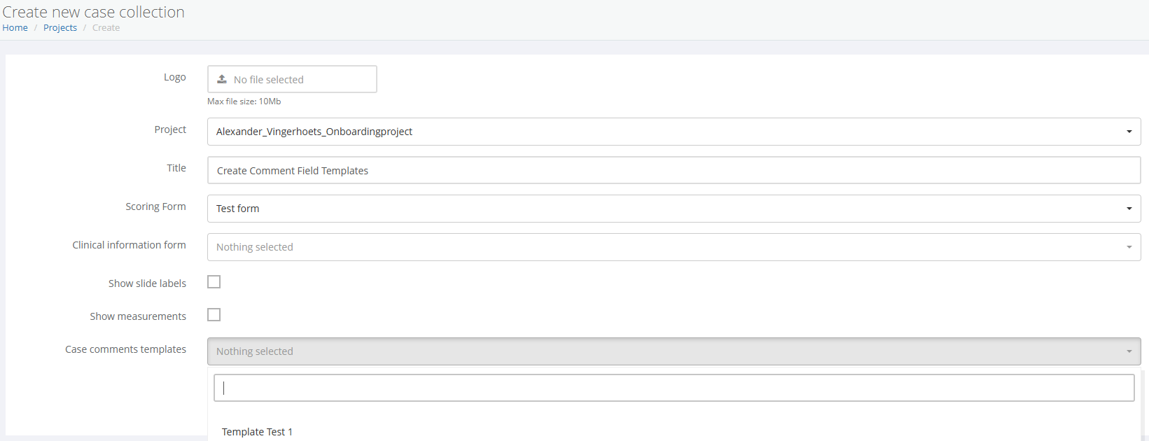 Now that your template is created, you can attach it to either an existing case collection or a new one. Simply select your newly created template from the dropdown menu for that collection.