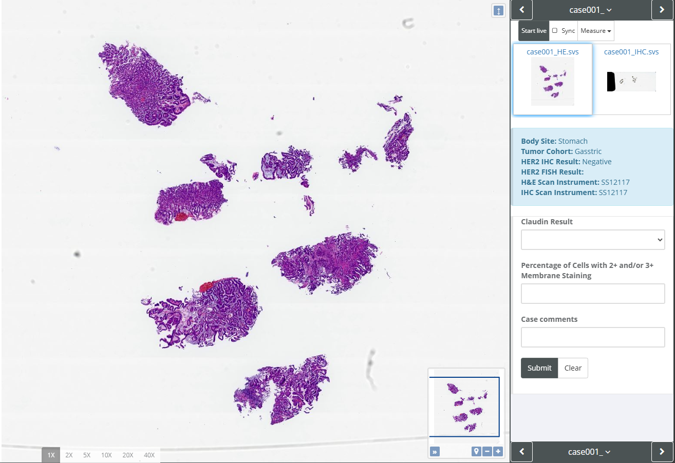 Once set up, a blue metadata panel will appear in your viewer, giving you and your trainees immediate access to the essential details while reviewing the digital slide.