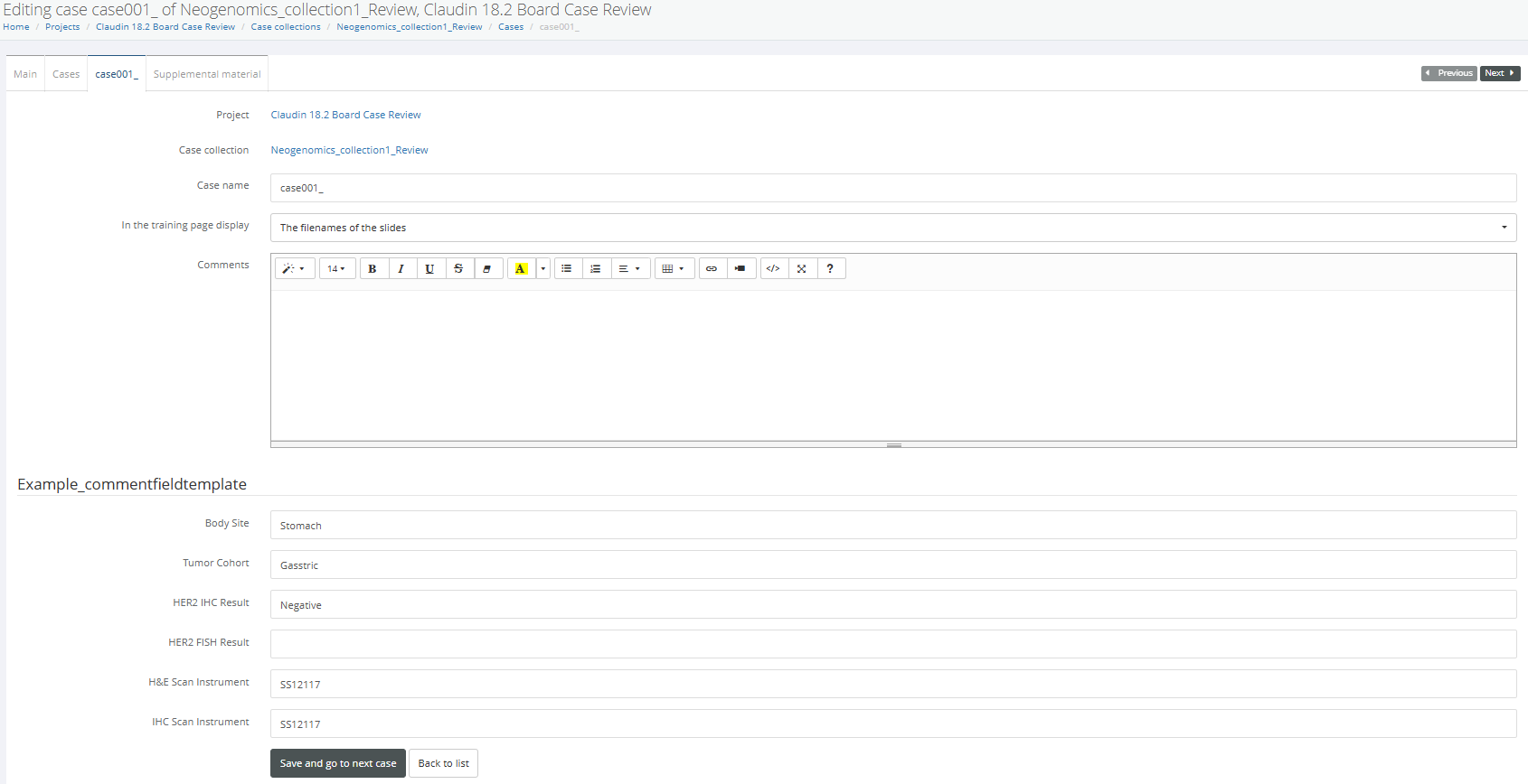 If you would like to add meaningful metadata to your cases during training sessions, PathoTrainer allows you to do this quickly using your own comment field templates. As a pathologist, you can structure this information exactly the way you prefer—whether it’s key histological features, clinical context, or teaching points you want to highlight.