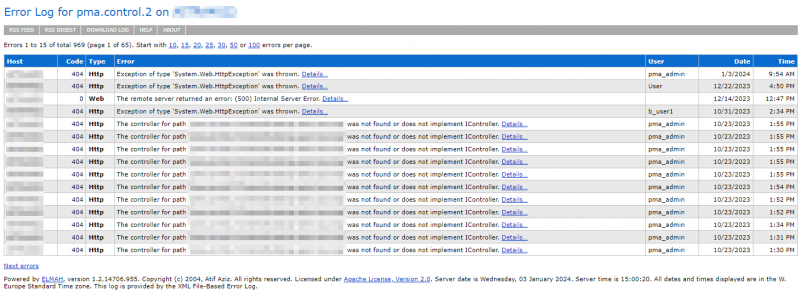 In the System Logs page of the System section of the administrators toolbar, you can see a list of errors that have been triggered.
