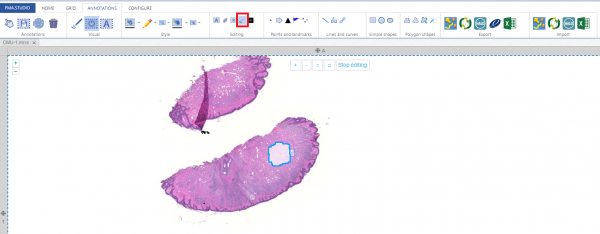 Brush tool allows you to paint specific area and create annotation on it. Once you draw using brush tool, you can click on “stop editing” button to create annotation on that area.