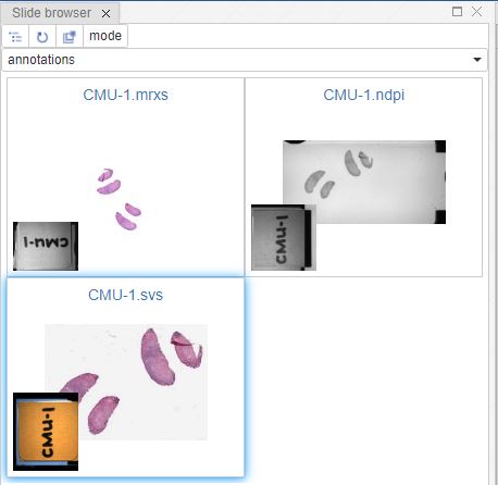 Purpose of Navigation panel is to provide an access to connected Tile servers, represent folder\slides structure and select slide to inspect. Navigation panel works in 2 modes - Tree mode and Slides mode.