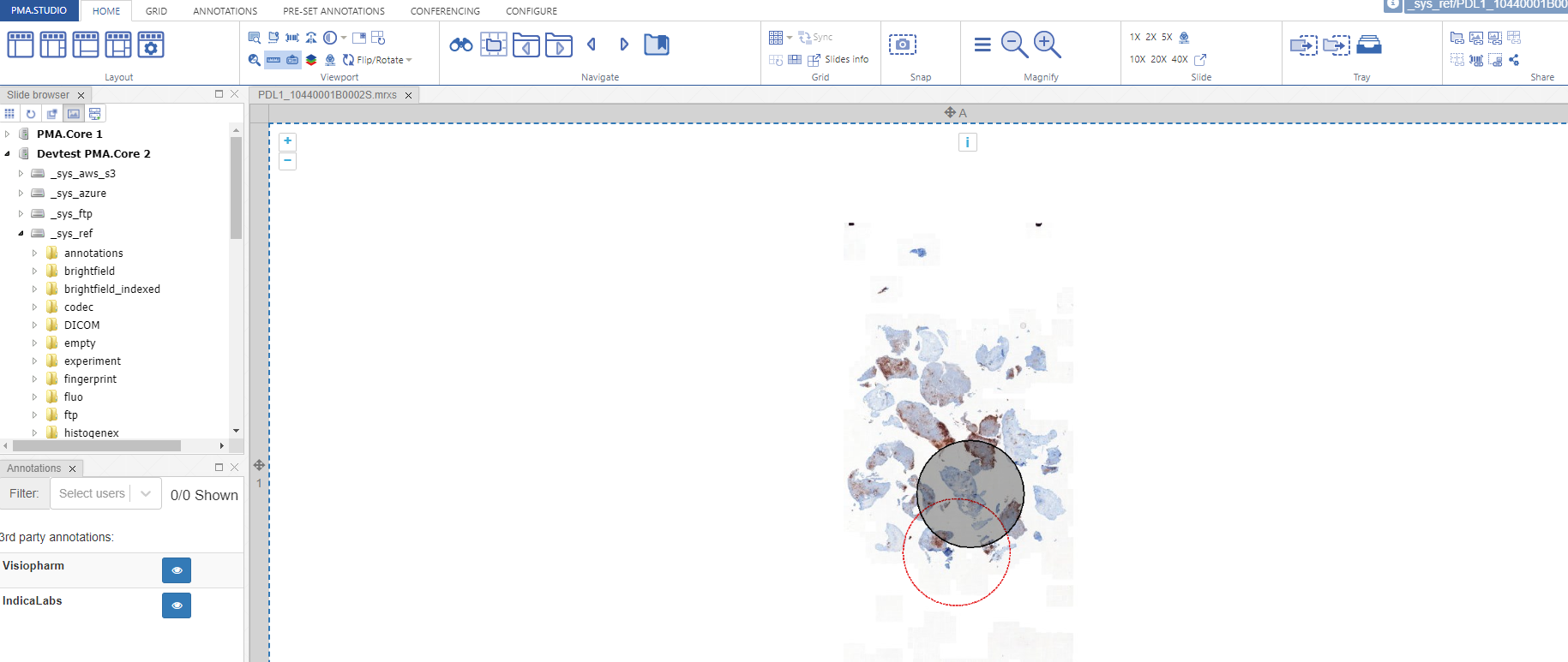 This link redirects to web-based viewer for whole slide image (WSI) data, developed by Pathomation. It contains application Main page, Embedded view and Embedded directory. Main page consists consists of 2 main parts - ribbon on top and panels organized in panel stacks.