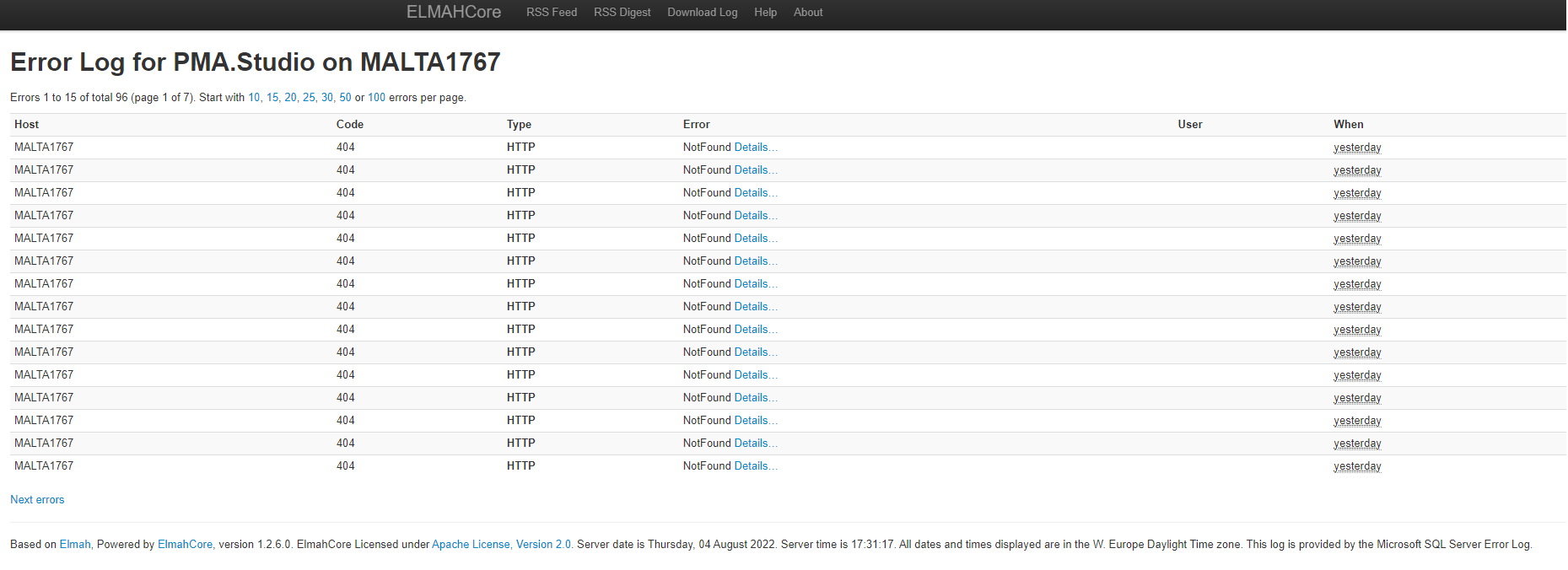 Elmah logs