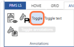 Clicking 'Toggle' will turn On/Off the visibility of annotations and any labels and measurements associated with them.