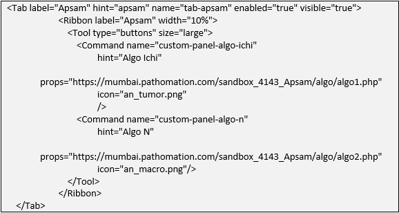 For adding a custom panel, you will need to add attribute “name“ to the command tag. The name should always start with “custom-panel- “abbreviation and should be unique. Then you will need to specify title for the custom panel using the “hint “attribute and it should be unique too. Next you need to specify the “props “ attribute where you will be adding the URL of the iframe that will be loaded inside the panel. That’s it and you can specify as many custom panels as you like using the same format.