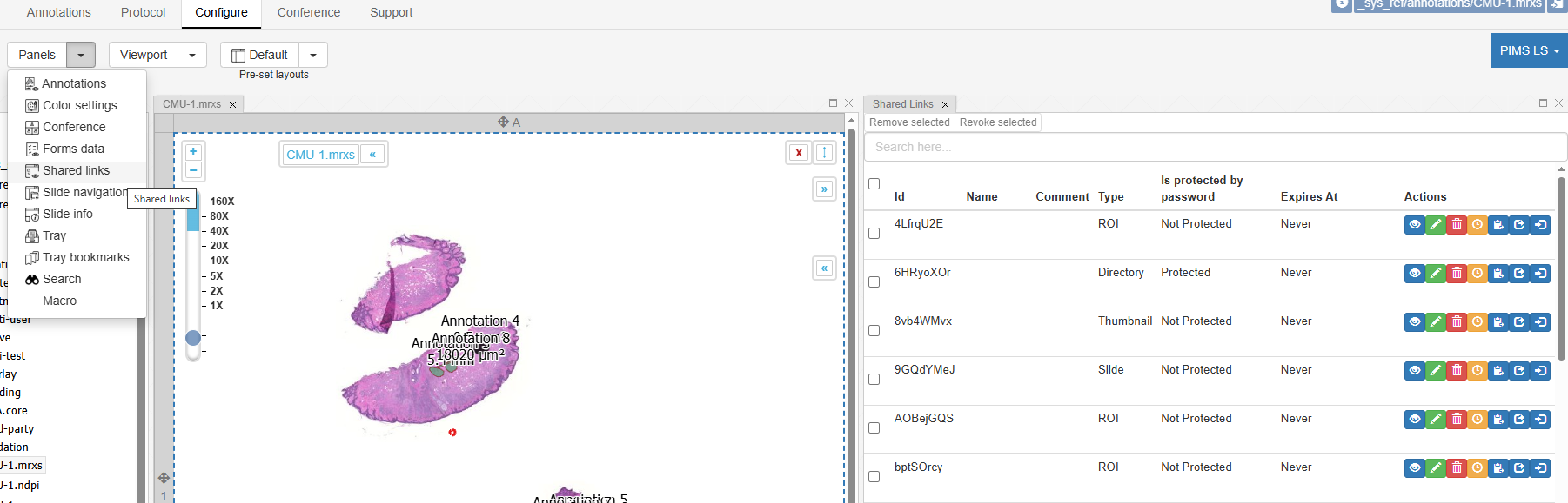PIMS LS allows you to easily generate links to share slides with your collaborators.