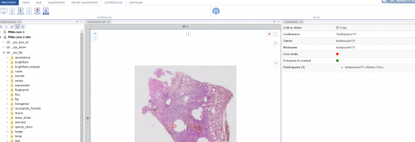 PMA.studio can interface with PMA.live for live broadcast sessions. Think of it as desktop sharing for whole slide images, but better (there's much less of a delay compared to conventional desktop sharing approaches).
