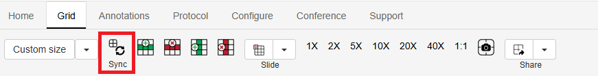 The Synchronize tool contains tools for turning on synchronized viewing and some grid management tools.