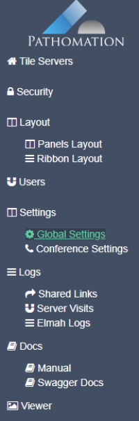 This includes global settings, PMA.core servers, security, shared links, conference settings, server visits, system users and lot more.