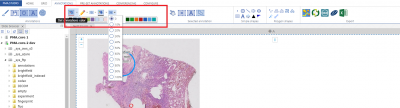 PMA.studio allows adding different styling to the annotations. You can change annotation color, pen width and opacity using these controls: