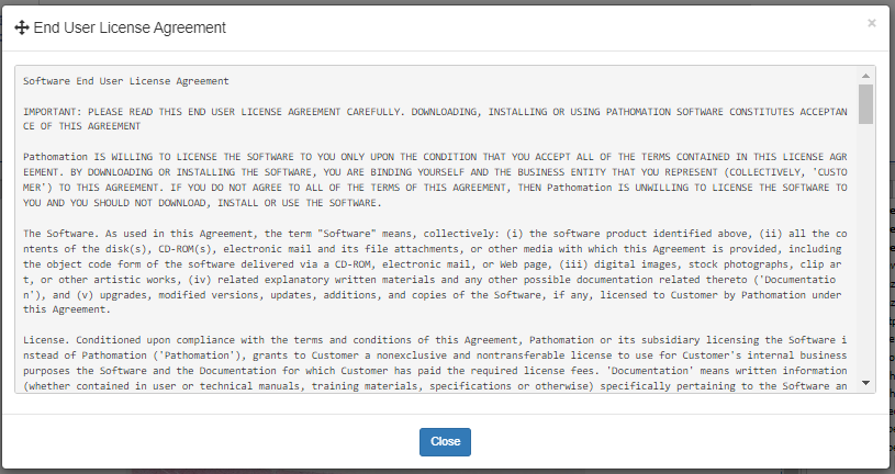 Pulls up the End-User License Agreement.