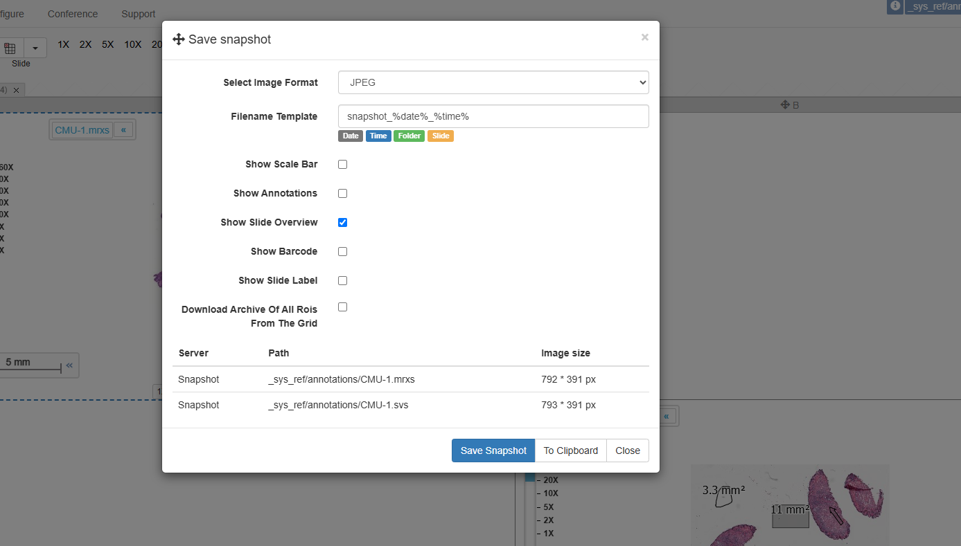 This tool allows user to take snapshot of the whole grid. On clicking the icon, a popup shows up that allows user to selected different options like annotations, barcode, labels to be part of the grid snapshot.