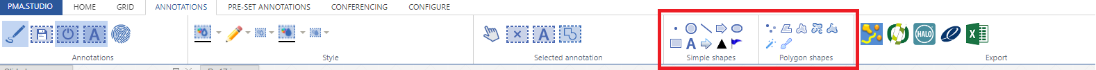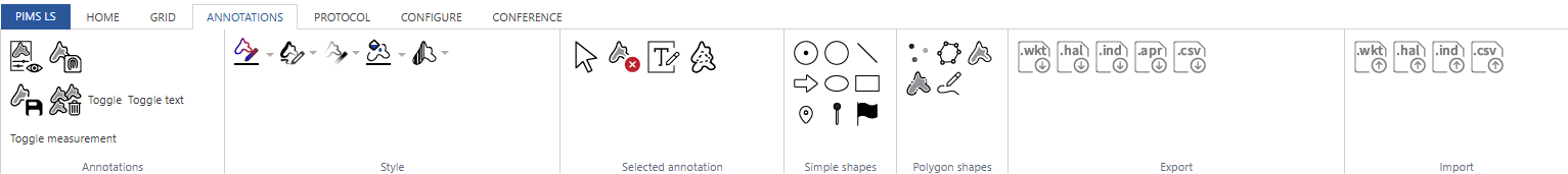 The annotations panel works in close collaboration with the dedicated "Annotations" tab on the ribbon: