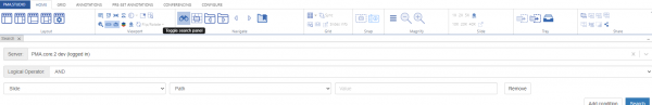 On clicking the “Toggle Search Panel” button search panel opens up that allows you to search different slides for selected PMA.core server.