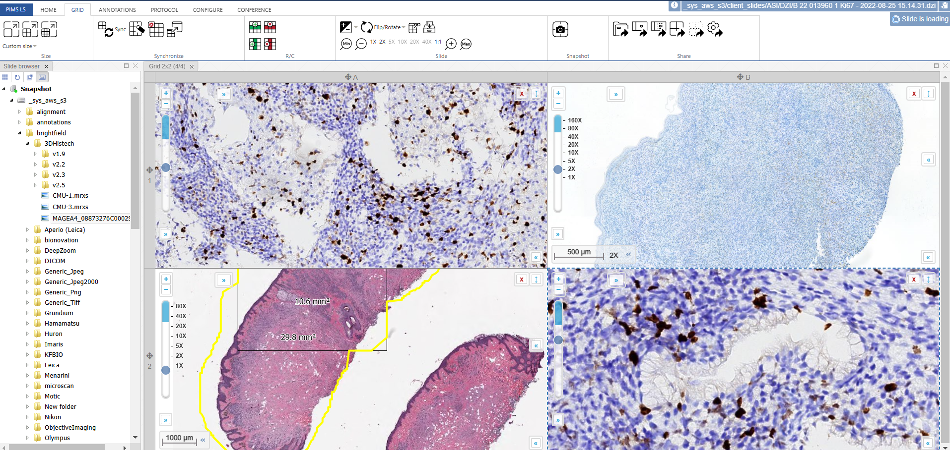 In the top row you can see icons for making a 1×1, 2×2, and 3×3 viewport grid, with 1, 4 and 9 images - respectively. The 2×2 option is shown below: