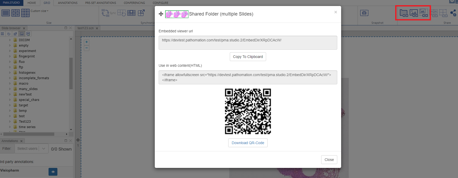 3. Quick Share currently selected ROI / annotation