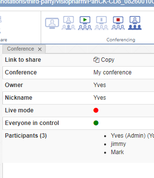 Host or participate in virtual conferences that include joint and simultaneous exploring slides or grid of slides and annotating slides. Conferences can be secured with a password and allow for bi-directional synchronization.