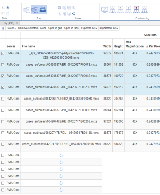 PMA.Studio offers to organize slides in a tray – it’s a virtual shell where you can put specific slides or folders. Virtual tray allows you to review slide info – dimensions, file size, # of layers and channels, barcode, filled forms, as well as external information.