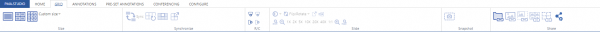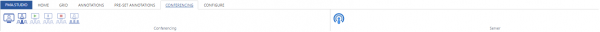 The ribbon includes a context menu, and tabs labeled Home, Grid, Annotations, and Configure. PMA.vue only has the Home tab. The ribbon in PMA.studio can be extended with optional tabs.