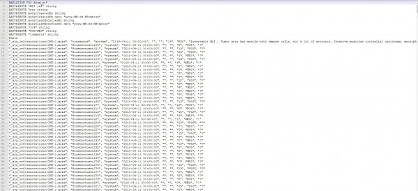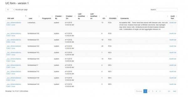 Clicking on the export to HTML format will take you to an interactive hmtl page displaying all submitted data. Here you can see the data in tabulated format, with pagination and also a search feature. This is very useful for some quick inspection and searching for specific data.