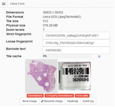 The image manager is accessible from the “Images” option on the left menu. This section allows the user to browse through the available virtual slides, manage the cache files, view, move and rename each image and launch the built in slide viewer.