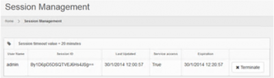 In the session management section the currently active users are displayed. The system gives the ability to terminate a user's session.