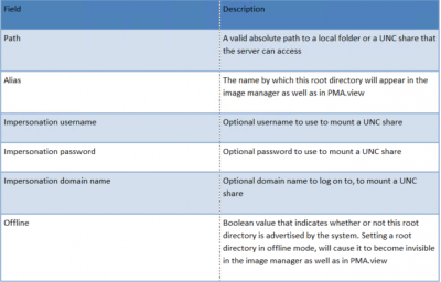 The following fields can be defined for a root directory: