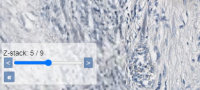 Similar to fluorescent slides; when a slide turns out to contain mutliple planes / stacks, a new widget appears automatically in the left-hand side of the viewport, allowing the end-user to navigate through the various layers.