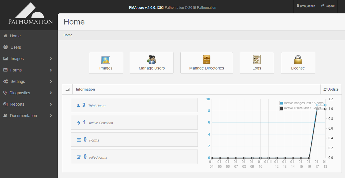 Die Endbenutzerschnittstelle für PMA.core erhalten Sie von Ihrem Systemadministrator oder Ihrem Pathomation-Supportkontakt (sie wurde Ihnen nach Abschluss der Installation mitgeteilt).