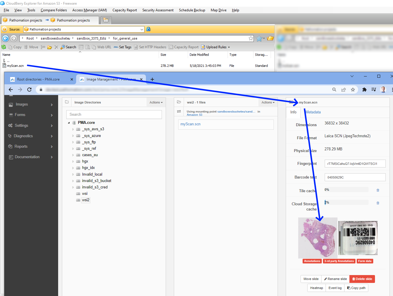 These keys are then used to configure the S3 mounting point at the PMA.core side:
