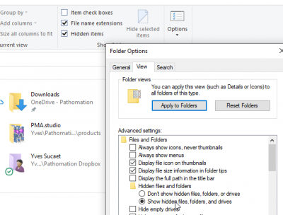 Can't see the TIFP files in your Windows Explorer, even after the slide renders correctly now in PMA.start? Then make sure that you have confirmed that hidden files are shown in addition to regular files: