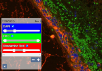 DAPI, Cy3, Cy5, … If these terms sound familiar, chances are you're engaged in fluorescent microscopy. We've been working with many vendors throughout the years to optimally support this imaging type. You can toggle individual channels directly in PMA.core, and do histogram clipping as you see fit. Advanced downstream applications that run on top of PMA.core like PMA.studio can even visualize the histogram of each channel for you, and apply additional per-channel gamma correction.