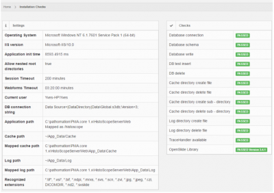 The installation check section performs various test to ensure the correct installation of the system as well as to verify the presence of all the required libraries.