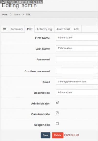 The end-user interface for PMA.core is available from your system administrator, or Pathomation support contact (it will have been communicated to you once the installation procedure was completed).